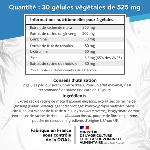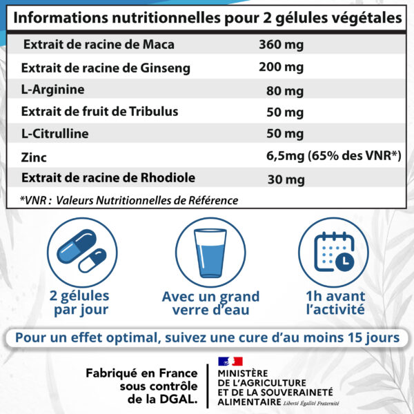 ✅ Haute dosage de Maca, Ginseng, Tribulus, L-Arginine, L-Citrulline et Zinc