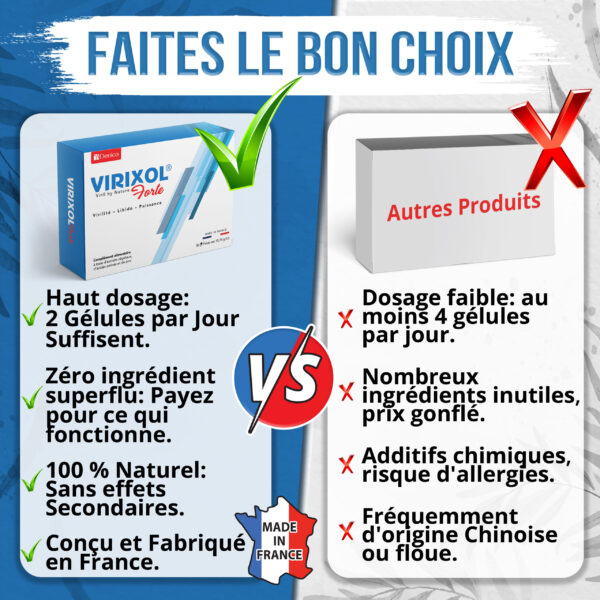 Franchement bluffé par Virixol Forté. En quelques jours, j’ai retrouvé mon énergie et ma libido comme à mes 30 ans. Les érections sont plus fermes, plus longues, et je me sens beaucoup plus confiant. J’apprécie surtout que ce soit un produit naturel, sans effet indésirable. Pour moi c’est un 5 étoiles mérité, je recommande sans hésiter.